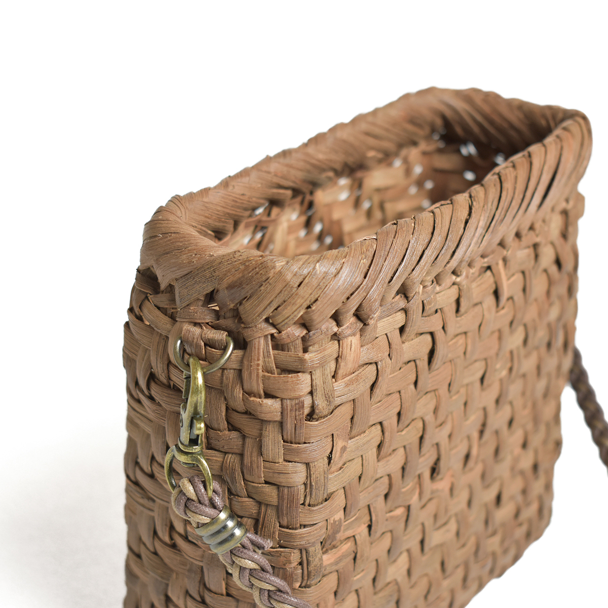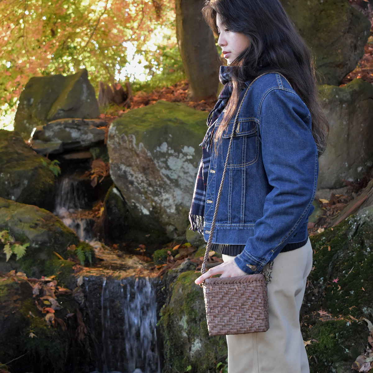 HOME | あじろ編み | オンラインストア限定【山形県産山ぶどう蔓】おさんぽ籠バック「スクエア」 あじろ編み オンラインストア限定【山形県産山ぶどう蔓】おさんぽ籠バック「スクエア」 販売価格 61,600円 (税込み) 1 2 カートに入れる メーカー 野々花染工房 ブランド みちのく蔓工芸所 商品情報 蔓カゴ製品 角形タイプ 送料無料編み方あじろ編タイプ角型サイズ(約)幅16cm マチ幅7cm 高さ16cm蔓幅約7mm重さ約160g材質国産山ぶどう蔓製作日本※当社のカゴはすべて山形県産材料の採集から製作、アフターケアまで一貫して行っております。※即日〜5日で発送いたします。※限定数で製作しております。品切れの場合は受注生産で承ります。 【山形県産山ぶどう蔓】おさんぽ籠バック「スクエア」 小さなスクエア型の籠です。 短い材料を利用して丁寧に編み上げました。 コンパクトですがマチ巾があるので収納力は意外とあります。 お散歩のお供に、ちょっとしたお出かけに一緒に連れて行ってください。 ロービキ紐2色で編んだ紐は、ショルダー用と手提げ用の2つをお付けします。 セット内容 ・籠 ・三つ編み紐/ショート 46cm(ナスカン含む) ・三つ編み紐/ロング 最長146cm(ナスカン含む) ※ロングは長さ調整可能です 別売り ・山ぶどう蔓ハンドル/約56cm(ナスカン含む) 8,800円(税込) ※蔓ハンドルは受注生産につき、お届けまで製作期間を頂きます。納期はお問い合わせください。 【貴重な資源を無駄なく使い切る】 みちのく蔓工芸所では、カゴを編む際材料の選別を行います。 短い材料や、表皮が剥がれているものや裂けているもの、変色したもの、蔓肌の悪いものは一旦省かれます。 それでも貴重な材料である事には変わりなく、同じように経年変化をしていきます。 私たちはそんな材料に「ひと手間」を加え、新たな作品作りを行っております。 SDGsの12の目標「つくる責任つかう責任」とあるように、限られた地球の資源を効率的に無駄なくつかう事。これが自然素材を取り扱う私たちができる山への感謝、自然へのルールと考えます。 ※ 当工房では自社で山に入り、山ぶどう蔓の採集作業を行います。 ※ カゴ作りに最適な材料は樹齢20〜30年のものと言われています。 ※ 蔓は成長を続けていくうちに他の木に巻き付いたり、日光を遮ったりします。 ※ 成長しすぎた蔓を採取することで、森林の成長を阻害するのを防ぎ、環境の再生を促すことに繋がっています。 【お手入れ方法・ご注意頂きたい事】 ● 常のお手入れは、手で擦るだけで結構です。擦るほど本来の艶が増し、柔らかく馴染んできます。 ● 雨や雪で濡れた場合は乾いたタオルで拭いてください。東北の厳しい自然の中で育っているので耐久性・耐水性には優れています。 ● 自然素材を一点ずつ手づくりしております。サイズや形、色味など、画面のものとは若干違いが出る場合がございます。また色味が画面とは異なる場合がございます。 ● 馴染むまでは毛羽が出てきます。気になる毛羽はハサミで切っていただいて問題はありません。ところによって剥がれや割れ、色の違い、節や厚みの違いなどある場合がございますが、自然素材の特性としてご理解いただきますようお願い致します。 ● 使い始めは、蔓のささくれや節などにより、肌や着ているものを傷つけたり、擦れたりする場合がございます。デリケートな絹や薄い素材などは特にご注意ください。使い込むことで、どんどん馴染んでなめらかになってきます。 ● 使用しない時は、通気性のよい場所で保管してください。 ● 当工房のカゴには塗料など何も塗らないでご使用ください。本来の艶が出なくなります。 ● 添付いたします「シリアルナンバーカード」は、修理・メンテナンスの際に必要となりますので、大切に保管してください。修理・メンテナンスは工房にて承ります(有料)。 ● 原料は通気性のよいところで保管してください。 ● 梅雨時期など湿気によりカビが発生した場合は、水に濡らしてシュロなどの毛の柔らかいタワシなどで擦ってください。洗剤や薬品などは使用しないでください。